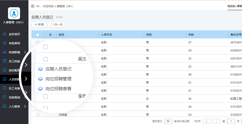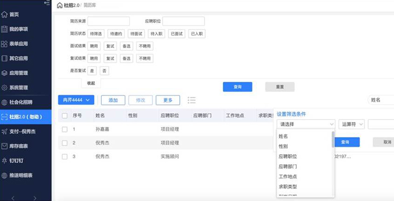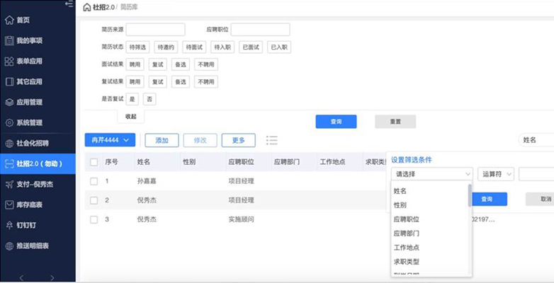 支持崗位招聘需求管理、面試安排、員工入職等管理應(yīng)用。