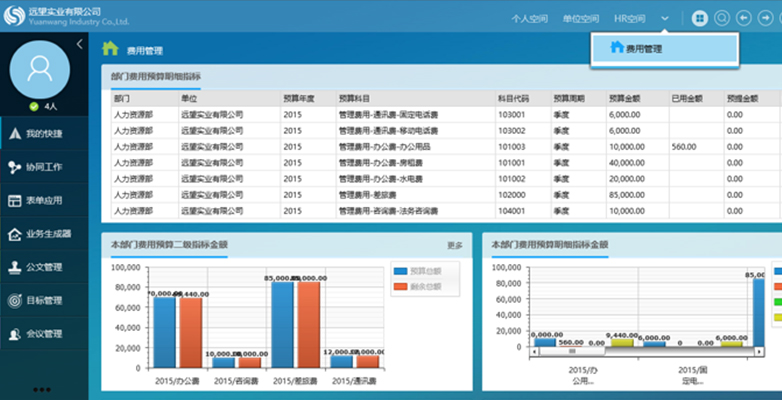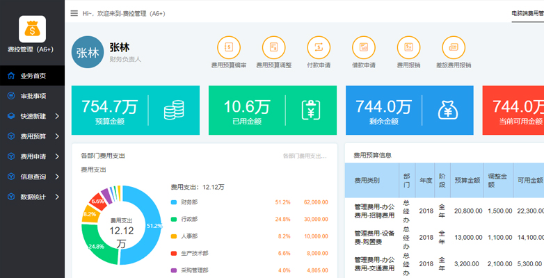 支持自定義常用功能入口;快速掌握費用使用情況的信息,并以圖表形式呈現(xiàn)。