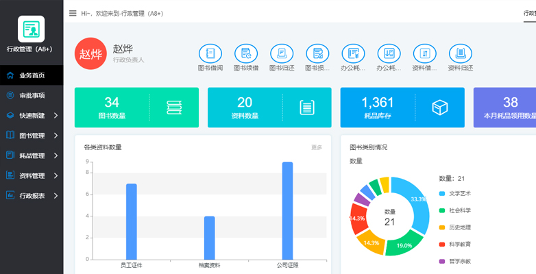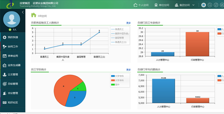 支持自定義常用功能入口;快速掌握行政管理的相關(guān)信息,并以圖表形式呈現(xiàn)。