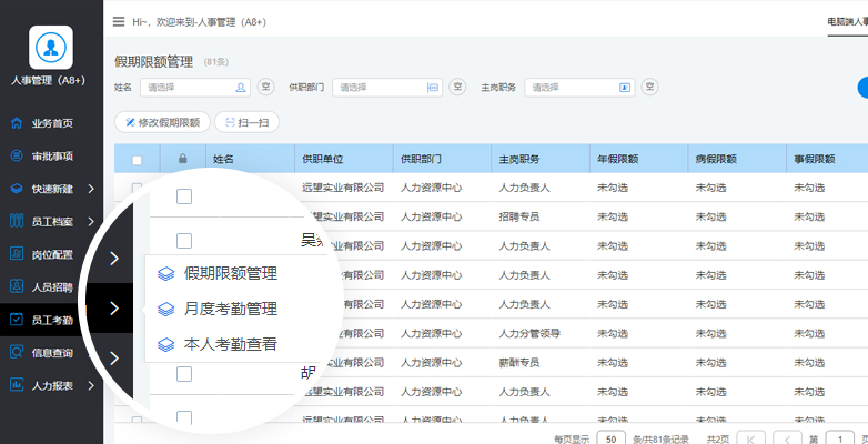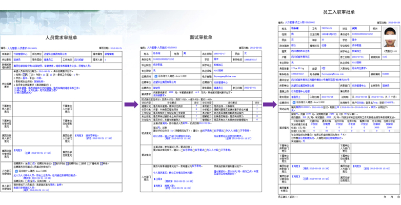支持對員工的轉(zhuǎn)正、輪崗換崗、離職等內(nèi)容的發(fā)起與審批。