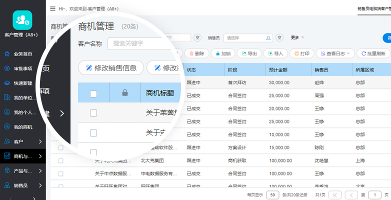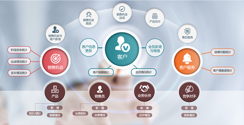 支持對商機(jī)的錄入、跟進(jìn)和管理,以及對銷售訂單、支付和售后服務(wù)的管理。