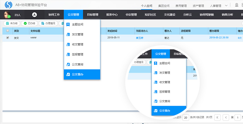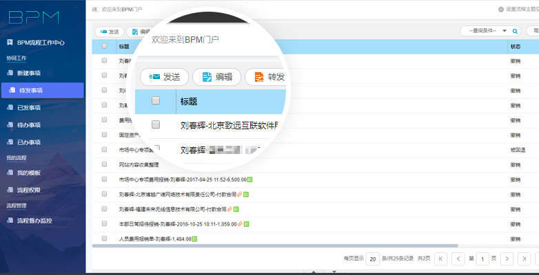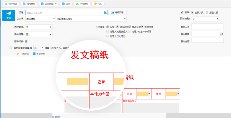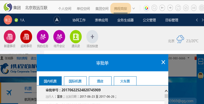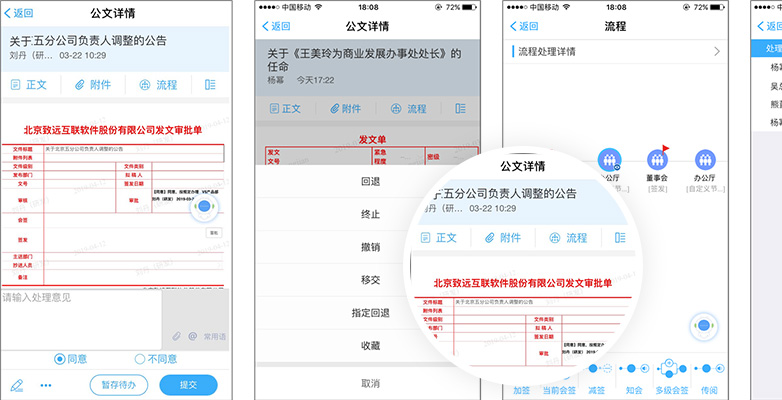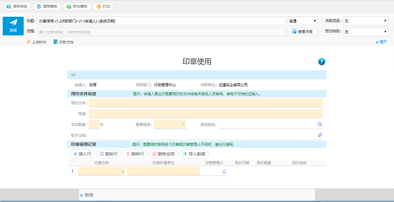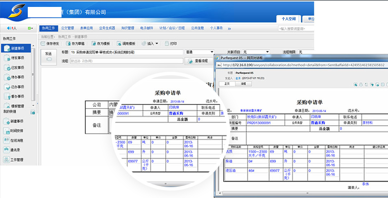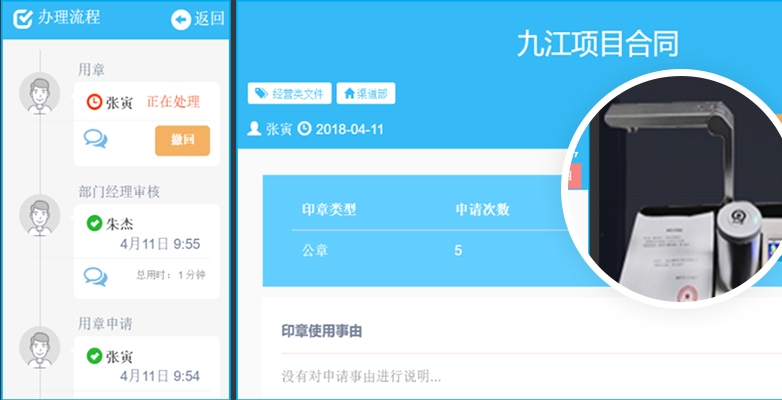 支持出差申請管理、文件審批與呈遞、上級請示和印章使用管理