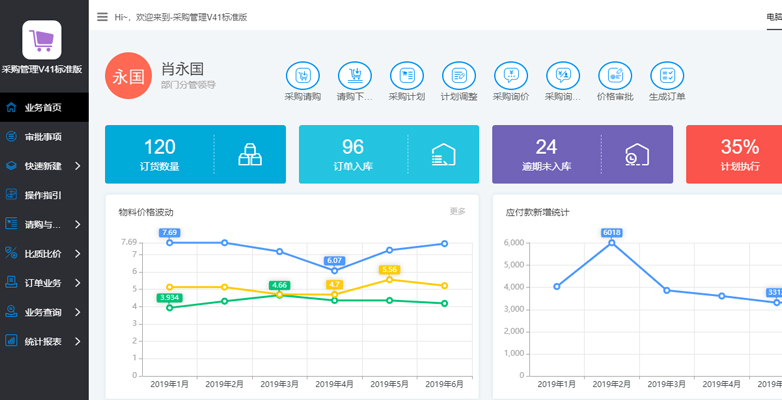 自定義常用功能入口;快速瀏覽采購相關(guān)數(shù)據(jù)報表,為采購相關(guān)決策提供依據(jù)。