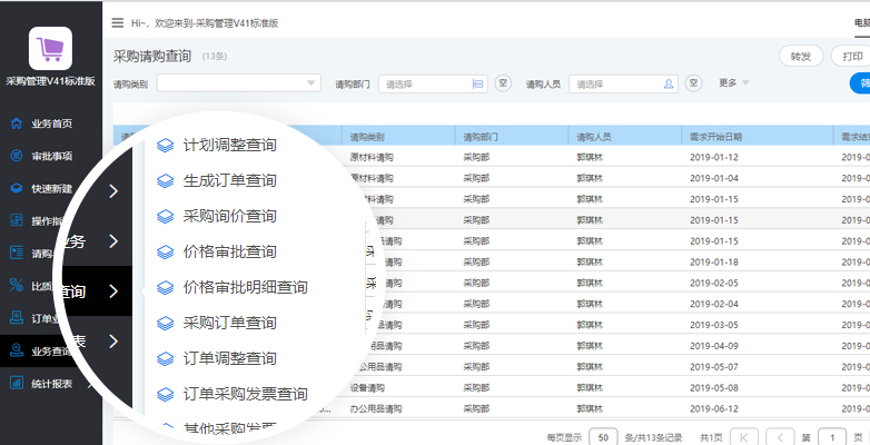支持請購、計劃、比質(zhì)比價、訂單和發(fā)票的所有流程審批查詢