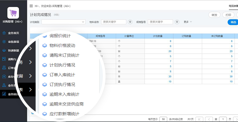 支持請購訂貨、計劃訂貨、物料報價和訂單執(zhí)行的報表統(tǒng)計