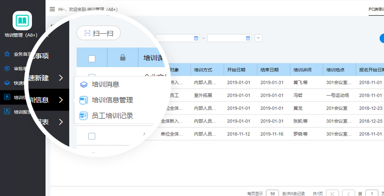 支持培訓(xùn)人員信息的錄入、記錄和管理,以及培訓(xùn)報審。