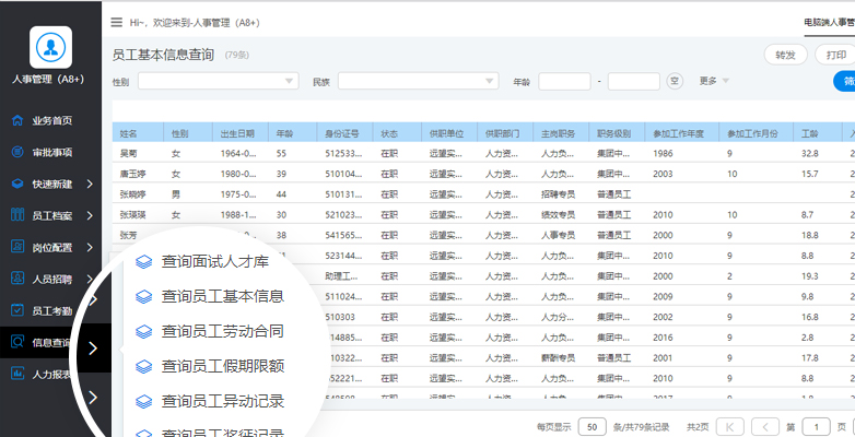 支持人事管理相關(guān)信息的查詢和報表統(tǒng)計,可根據(jù)實際需要調(diào)整修改。