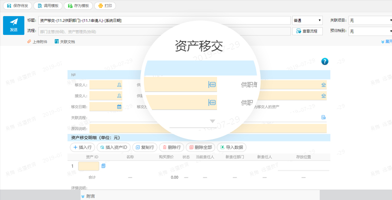 支持資產(chǎn)的調(diào)配、移交、贈出、轉(zhuǎn)讓、報廢和報損等流程審批。