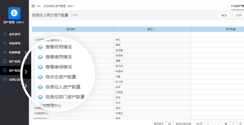 支持資產(chǎn)管理相關(guān)信息的查詢和報表統(tǒng)計,可根據(jù)實際需要調(diào)整修改。