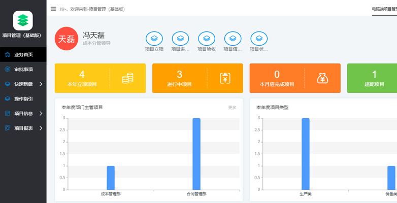 支持自定義常用功能入口;快速掌握項目管理的相關(guān)信息,并以圖表形式呈現(xiàn)。