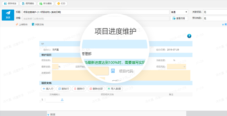 填寫進(jìn)度相關(guān)信息后,經(jīng)審批后,系統(tǒng)自動更新項目進(jìn)度。