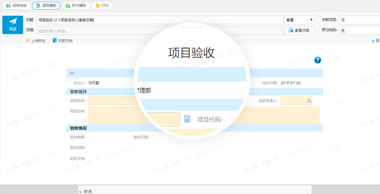 填寫項目驗收單,經(jīng)相關(guān)部門及管理者審批后,系統(tǒng)自動更新項目狀態(tài)。