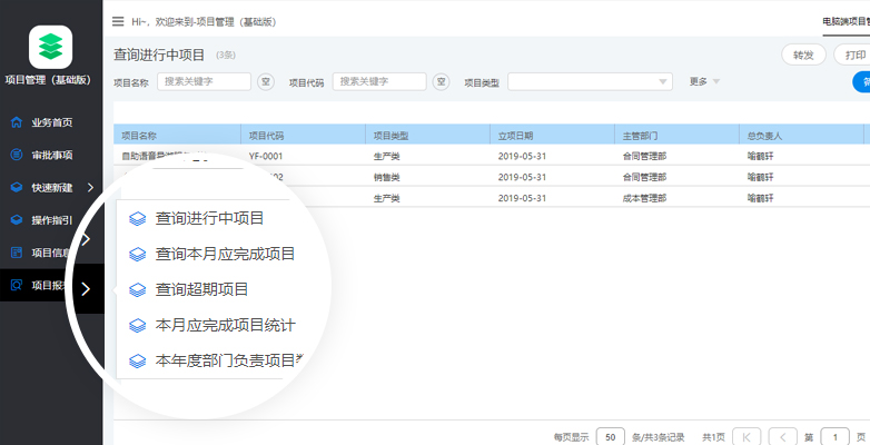 支持項目管理相關(guān)信息的查詢和報表統(tǒng)計,可根據(jù)實際需要調(diào)整修改。