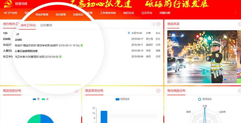 自定義常用功能入口;快速掌握黨員相關(guān)數(shù)據(jù)信息,并以圖表形式呈現(xiàn)。