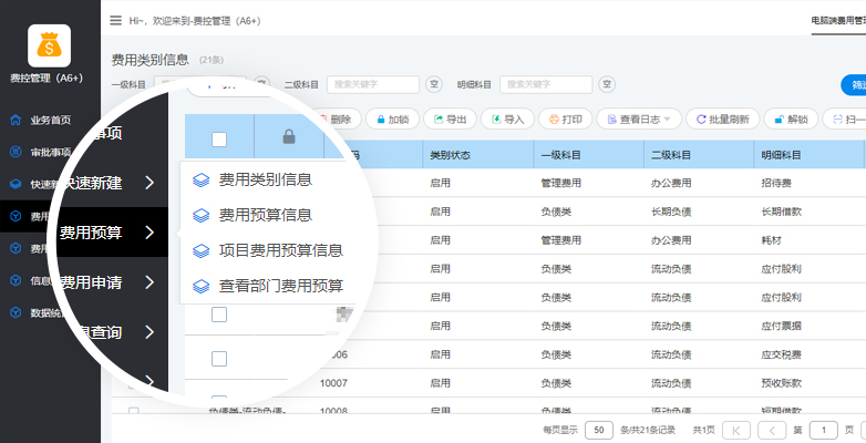 支持費用預(yù)算的基礎(chǔ)信息存儲、控制、編審和查看。