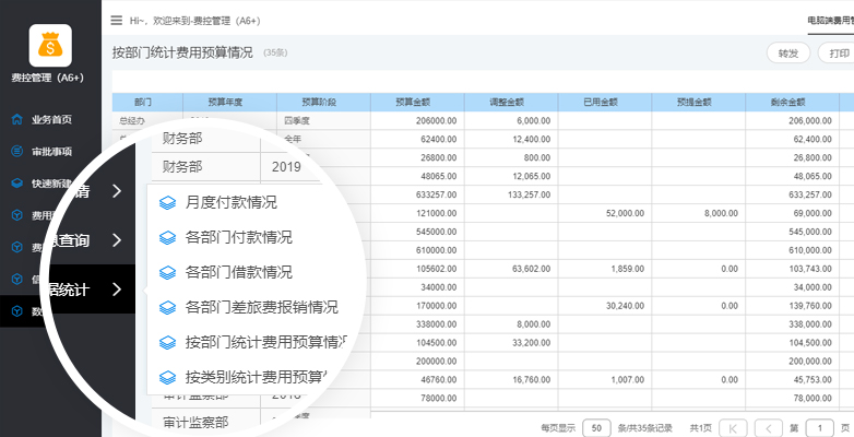 支持借款、付款、報銷等費用使用功能,并生成臺賬。