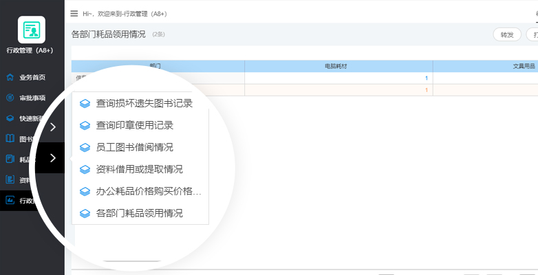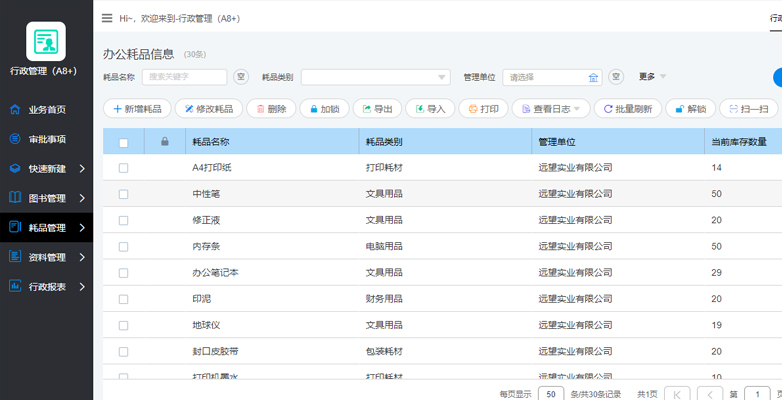 支持對耗品信息的登記、申購和領(lǐng)用。