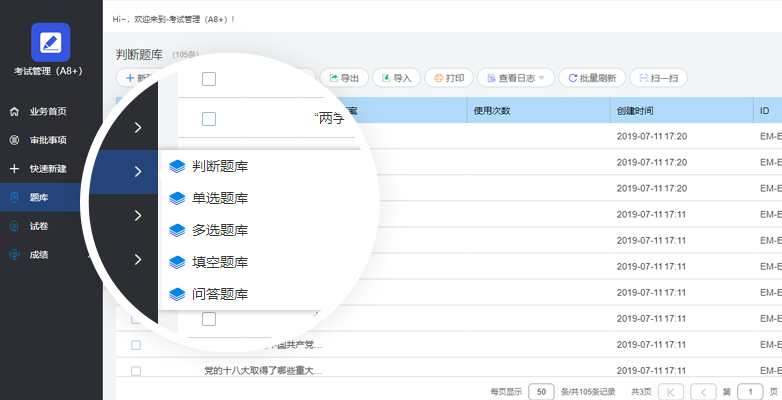 支持建立企業(yè)自己的考試題庫,如判斷題庫、單選題庫、多選題庫、填空題庫和問答題庫