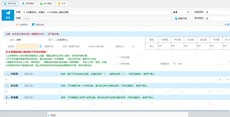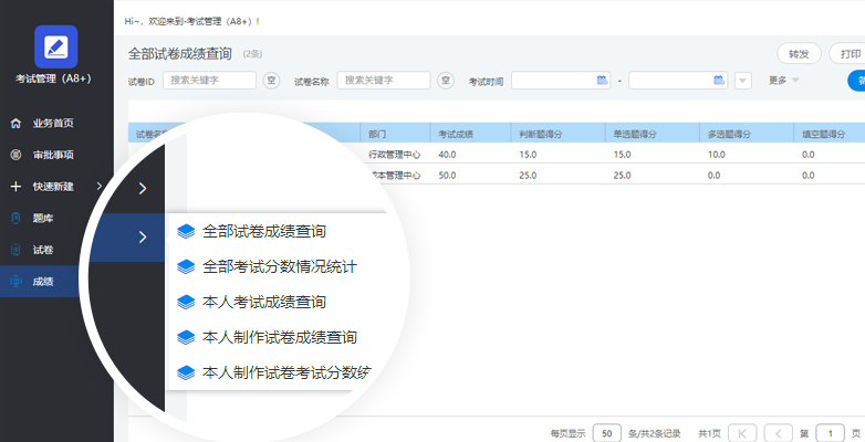 支持針對不同人群設(shè)置不同試卷,系統(tǒng)即自動完成批改和計分。