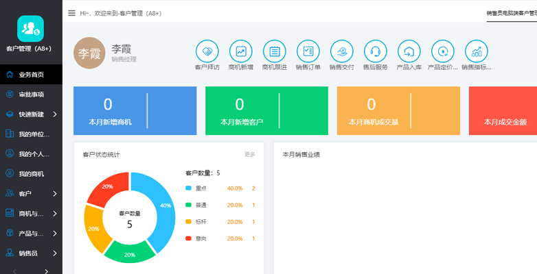 支持自定義常用功能入口;快速掌握客戶管理的相關(guān)信息,并以圖表形式呈現(xiàn)。